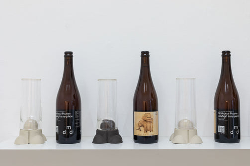 Voor Skyhigh is my place heeft Shahpour Pouyan een bierglas in een speciale editie ontworpen. Elk glas is handgemaakt, in een oplage van 300. Bij aankoop van twee glazen wordt de set vergezeld van een limited edition magnum bierfles Ouwen Duiker van Hedonis Ambachtsbier, waarvoor de kunstenaar het etiket heeft ontworpen.