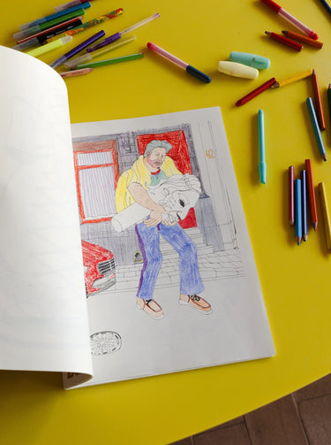 Dit grootformaat kleurboek verzamelt lijntekeningen van 28 kunstenaars. Het is geprint op stevig ongestreken paper met een natuurlijk ruw oppervlak, net als goed tekenpapier. Het kleurboek heeft A3 formaat en alle pagina’s zijn geperforeerd aan de rug, zodat je er makkelijk tekeningen kan uitscheuren op thuis op te hangen.